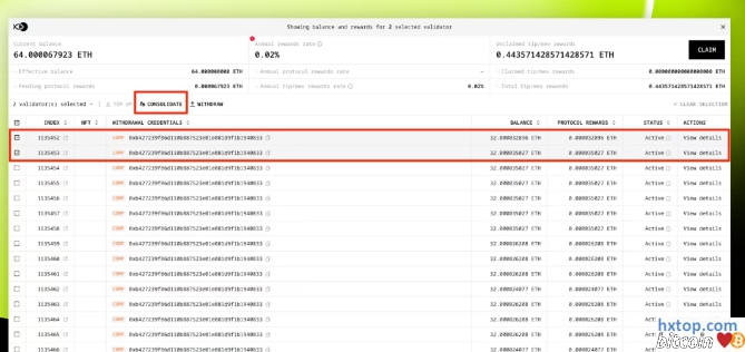 3. 合并Validator1) 访问Stakefish Dashboard,选择要合并的Validator,点击“CONSOLIDATE”(合并)。