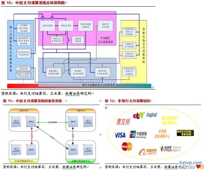 3. 与现有的中心化系统相比,区块链系统更安全、更快速和更便宜传统的中心化系统之间进行交易的需要一个可信任的第三方机构作为中介。比如我国的支付清算系统中就存在四大中心化的支付清算系统,包括中央银行支付清算系统、银行业金融机构支付清算系统、金融市场支付清算系统和第三方服务组织支付清算系统。其中中央银行支付清算系统是各银行和货币市场的公共支付清算平台,主要子系统包括大额支付系统和小额批量支付系统;金融市场支付清算系统主要包括中债登、银行间外汇交易系统、银行间拆借交易系统和中证登,主要为各类机构或个人提供证券交易的支付清算服务;第三方服务组织支付清算系统作为重要的补充,为一些特殊领域的支付结算提供相应的服务。