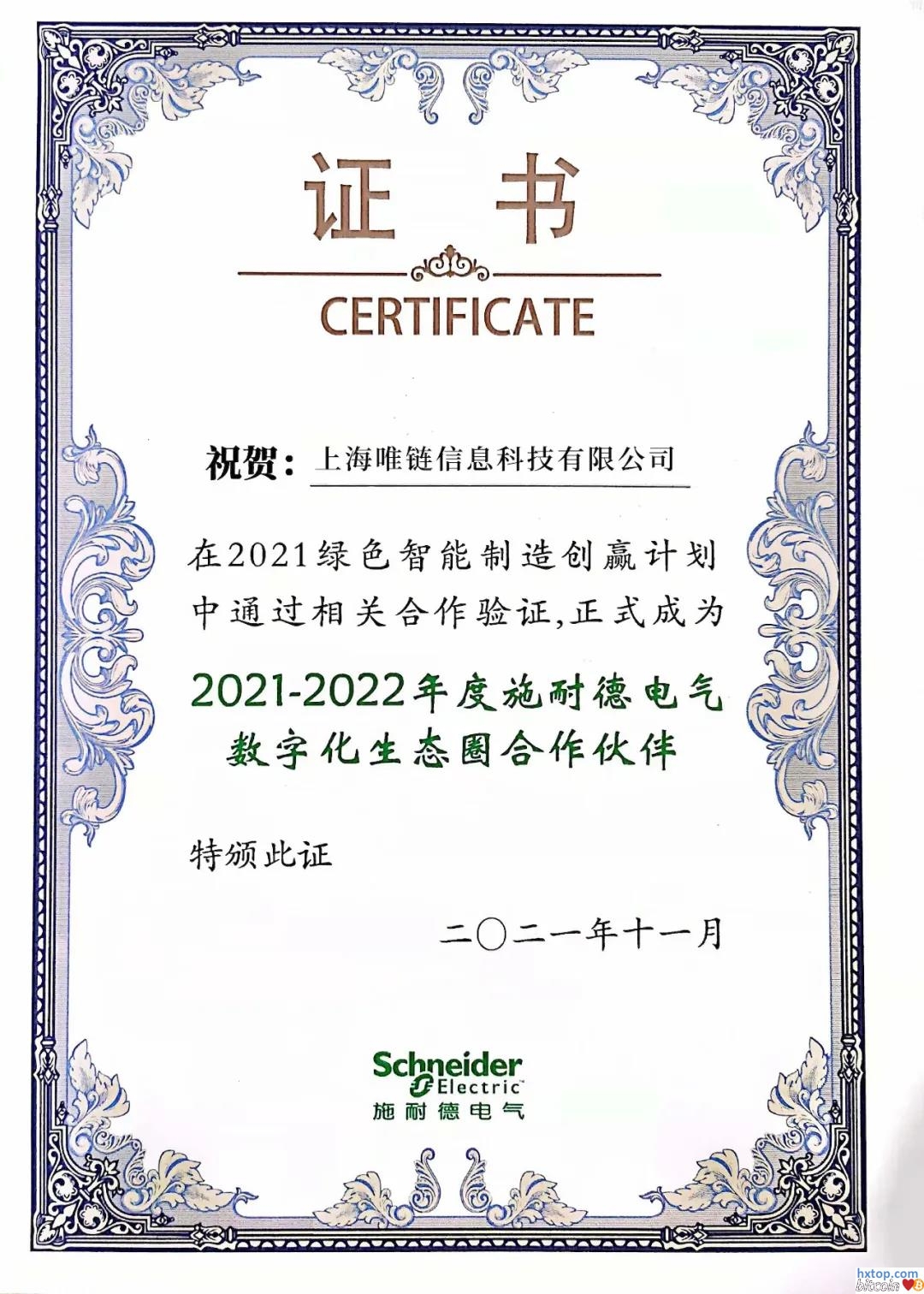 施耐德电气全球市场部中国区副总裁(古月)唯链科技业务拓展总监成健(右) 区块链技术助力绿色智造 “绿色智能制造创赢计划”是目前行业内最受关注最有价值的创业孵化与技术创新平台之一。2020年首届“绿色智能制造创赢计划”,施耐德电气集生态圈之力助力面向未来的创新解决方案落地,开启了三方联创的新篇章。2021年第二届,自3月开启报名,总共121家企业提交报名信息,最终仅有10家企业顺利完成概念验证过程并进入最后的总决赛现场演示。 作为企业级区块链应用的先行者,唯链科技此前已与施耐德电气在共创绿色数字化技术的路上有过数次交流合作,包括在第四届中国国际进口博览会上联合展出“工业企业可持续整体解决方案”,以及唯链在施耐德绿色智能制造创新峰会上进行关于灯塔工厂的分享。本次唯链携施耐德武汉工厂绿色产品碳足迹方案参赛,代表着自身在数字化脱碳减排方面的新理解,能帮助企业高效运用区块链技术,在确保碳管理数据的真实性、可溯性、不可篡改性的前提下,持续推进绿色数字化革新。 在活动现场,唯链科技正式成为2021-2022年度施耐德电气数字化生态圈合作伙伴,双方将就进一步推动结合区块链技术的绿色制造联创方案落地开展合作。 作为发起者与主办方,施耐德电气在第二届活动中携更多生态伙伴为参赛企业提供支持,包括工信部国合中心、亚信安全、中科创达、亚马逊云科技、清华大学全球产业研究院、智慧工厂研究院,集中了各方优势资源,旨在打造技术与场景需求之间的桥梁。本次荣誉标志着唯链科技在绿色区块链技术落地领域迈上一个新台阶。