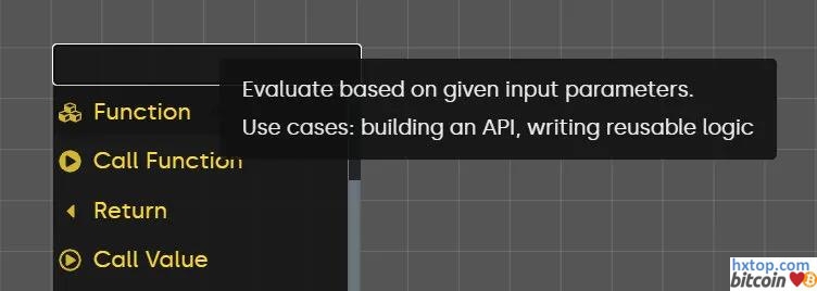 解释功能的工具提示 反射该编辑器的代数类型系统、透明的代码生成和方便的工作流使用户能够设计出规模远远超过任何其他流行的可视化编程环境的智能合约。
