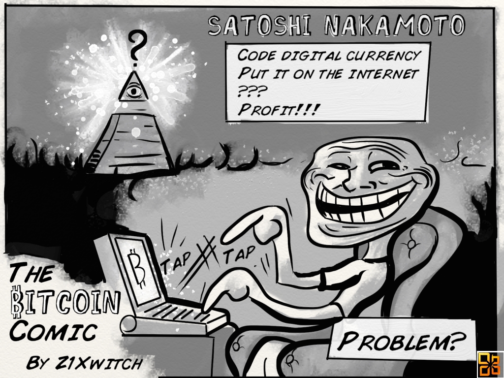 Satoshi Nakamoto is the pseudonymous creator of Bitcoin. (Comic: Rasmus Rasmussen, Z1Xwitch ArtWork)