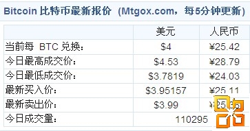 2011年10月08日比特币跌至3.99USD,据国外论坛分析,国外MTGOX.COM有人大量抛售.国内btcchina.com交易站也同样出现卖多买少.据估计还会持续跌一断时间,涨的可能性有,但幅度小.也许比特币正处于一个"培养"期吧,毕竟这是少数人的"货币"游戏.总的来说还是盘子太小了,整个行情玩转玩大有一定的难度.从目前国外较火的比特币论坛来看不难发现大部分的玩家都在专注于挖矿获取比特币,焦点集中在挖矿设备和技巧上,真正为比特币前途考量的实际应用较少,目前比特币好像也进入了一个"寒冬"见下图也许能帮你分析最近的行情走势,是利是好欢迎大家在本文后面发表评论.