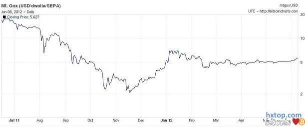 一年后的今天,随着泡沫的破裂,我们回头来看 Bitcoin 走过的路,同时展望下 Bitcoin 的未来。2011年 6 月 8 日,Ars Technica 第一篇关于 Bitcoin 的报道的同一天,基于 P2P 的数字货币的价格达到了空前的一比特币 32 美元的峰值。就在两月前,一比特币的价格还不足 1 美元。而在接下来的一周内,一比特币的价格跌到了 20 美元以下,截至十一月份,一比特币的价格已经跌到了 2 美元。 但就在去年末触底以后,Bitcoin 开始回击质疑,证明自己并不是昙花一现。目前 Bitcoin 已经收复了一些失地,最近几个月一比特币的价格稳定了许多。在过去的三个月内,一比特币的价格一直徘徊在4.5美元和5.5美元之间。就在行文之际,一比特币的价格达到了三个月以来的最高峰值:5.6美元。