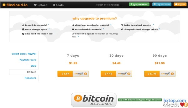 国外专业的在线存储云服务提供商filecloud.io在其用户的支付选项中提供比特币支付功能.