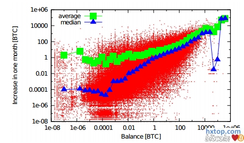 根据发表在预印本网站上的一篇论文, 匈牙利Eotvos Lorand 大学的研究人员下载了比特币完整的交易清单,重组每个账户的交易历史,重建了比特币数字货币在网络中的流动,观察财富创造和积累的模式。他们发现,在 2011年前,只有少数狂热者使用比特币,当时的比特币基本没有任何实际价值。但2011年之后,比特币引起了媒体的关注,吸引了愈来愈多的用户,数字货币开始拥有了交易价值,具备了货币的雏形。 在这一阶段,研究人员观察到了马太效应,也就是富者愈富的现象。