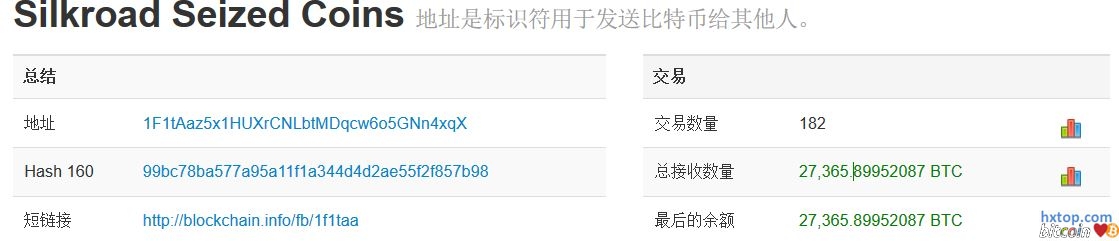 FBI在10月2日关闭了丝绸之路,扣押了超过2.6万BTC,价值在380万到400万美元之间。由于所有比特币交易记录都公开在块链(blockchain)中,比特币社区根据钱包交易时间和交易额记录识别出了FBI的钱包地址(如图),该地址在10月2日完成了大量上千BTC的交易,目前余额为27,365.89966467BTC。Blockchain.info用户已经将该钱包标记为 “Silkroad Seized Coins”,有许多比特币用户向该地址发送了0.00001 BTC或0.0000001 BTC,并在交易的公开信息中向FBI和美国政府发表抗议声明“Ross Ulbricht不是坏人,你们才是坏人,睁开你们的双眼,扪心自问,别再被洗脑了”。 相关报道: 丝绸之路被查若干细节http://www.hxtop.com/html/bt01/201310062601.html “丝路”被查抄利空比特币?行情显示已无大碍http://www.hxtop.com/html/bt01/201310052599.html 比特币交流社区Bitcointalk被黑 无法访问http://www.hxtop.com/html/bt01/201310032598.html 丝路网站遭FBI查抄 比特币受冲击价格暴跌15% http://www.hxtop.com/html/bt01/201310032596.html |