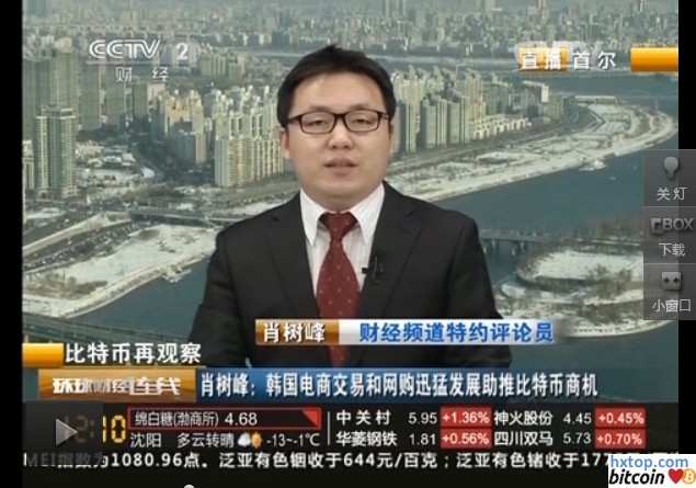 撰文/杜毅 今日,央视CCTV2 频道【环球财经连线栏目】播出了主题为《比特币再观察:韩国电商交易和网购迅猛发展助比特币商机》(点击视频原链接)的系列节目,介绍了现在比特币在韩国的发展情况。节目分为两部分,第一部分由韩国外国语大学商学院的肖树峰教授,介绍韩国比特币发展现状。他谈到几点: 1,比特币直接交易,有利于提高电商交易的快捷和便利性。