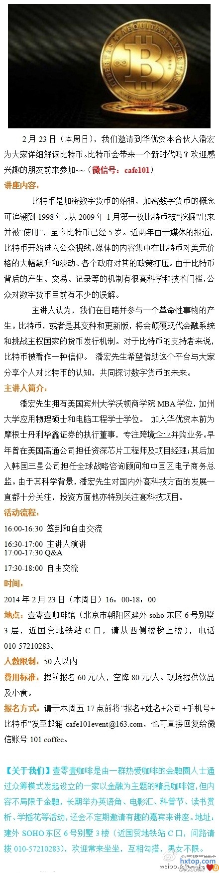 【金融菁英汇】近两年比特币开始进入公众视线,关注点集中在比特币对美元价格的大幅飙升和波动、各个政府对其的政策打压。由于比特币的产生、交易、记录等机制有很高科学和技术门槛,公众目前有不少误解。2月23日(本周日),我们邀请到华优资本合伙人潘宏为大家详细解读比特币。