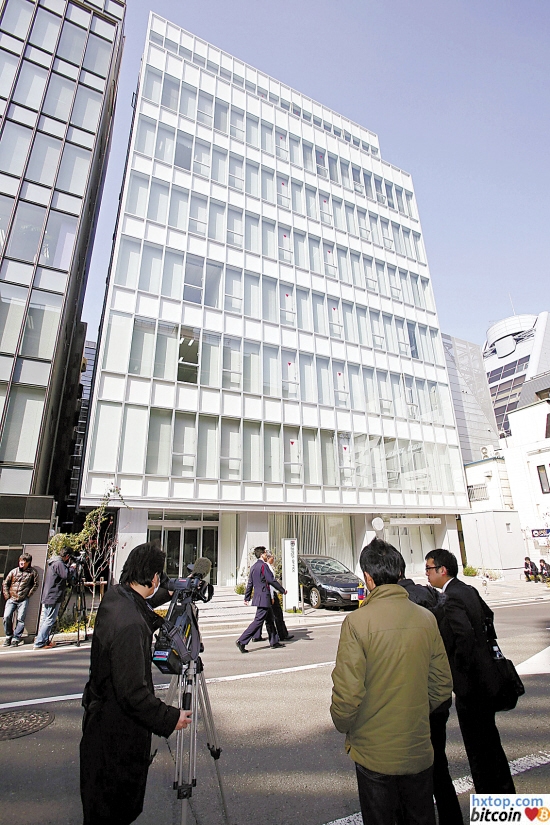 26日下午,众多媒体守候在位于东京涩谷的“比特币”交易平台“Mt.Gox”所在大楼前