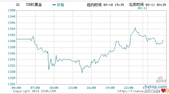 新浪财经讯 北京时间3月11日凌晨消息,纽约黄金期货价格周一收盘上涨0.2%,报每盎司1341.50美元,扭转此前跌势。同时,期铜(45600, -1660.00, -3.51%)价格大跌近2%,原因是中国出口数据不及预期。