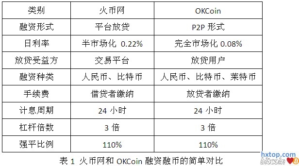 2、火币和OKCoin的融资融币形式对比 火币网是平台向用户放贷且融资融币的总量是有限的,导致后来的用户借不到钱,于是火币推出了预约借贷,当有用户还款以后系统才可以重新放贷,谁的预约利息高就借给谁,从而导致预约利率非常高,年利率甚至达到了80%-100%,赤裸裸的抢劫呀!!!OKCoin的融资融币形式是P2P的,OK标榜说是国内首创,借贷放贷都是在用户与用户之间发生的,平台不参与借贷放贷,放贷天数可选,利率市场化,这很容易理解,你放贷的利率高自然没有人借利率高的,只要市场有需求P2P市场就能够满足。
