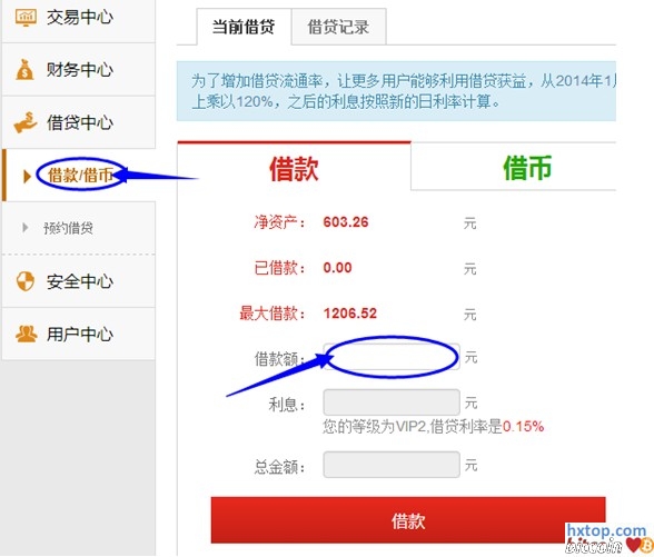 小结:火币网的预约借贷导致竞标利率变高,OKCoin的利率由市场决定;火币网放贷的受益方是交易平台,而OKCoin放贷的受益方是用户;火币网的借贷实质上是平台虚增的资金,OKCoin的P2P借贷形式不会增发(原则上是平台不增发,如果平台伪装用户放贷也存在虚增问题)。 3、利率以及优惠 火币网和OKCoin都有VIP系统,具体的VIP形式不做分析,我只分析融资融币的利率优惠问题。火币网是向平台借钱,火币的VIP可以享受利率优惠,火币利率优惠最高可达50%;而OKCoin的VIP系统目前还没有完善,截止发稿OKCoin停止了原来的VIP优惠形式,因为OKCoin之前的利率折扣优惠是由放贷者承担的,放款者利益受损,饱受诟病,目前OKCoin还没有摸索到科学的优惠政策,官网公告显示正在研究新的优惠政策。就目前的VIP系统来说火币网要比OKCoin的要完善。 4、操作对比 火币网操作:点击“借贷中心”→点击“借款借币”输入借款额就可以借款了,如果系统的无钱可借了,那需要点击“预约借贷”,按照利率从高到低排序,利率越高优先借到。