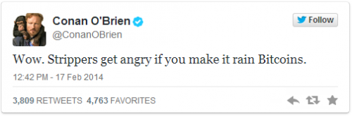 有些账户只是“昙花一现”,某条推文突然被大量转发,如脱口秀主持人Conan O’Brien的这条推文。