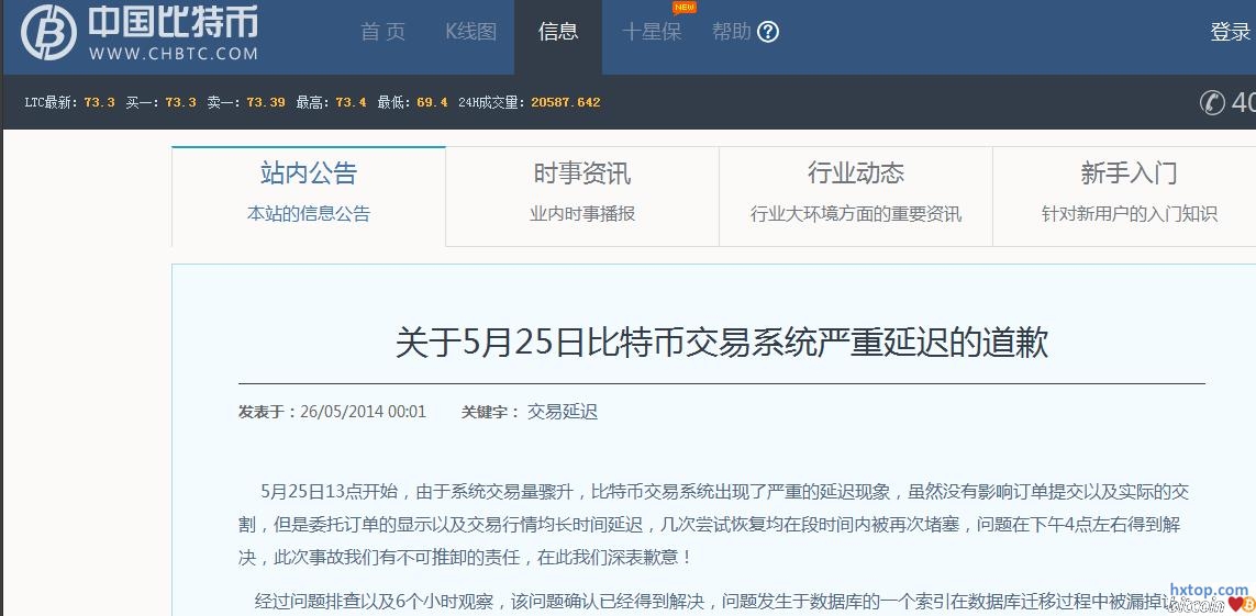中国比特币在官方公告中表示,数据库漏洞导致了此次交易系统委托订单显示及交易行情的长时间延迟,但该漏洞并未影响订单提交及实际交割。目前该问题已经得到了解决。