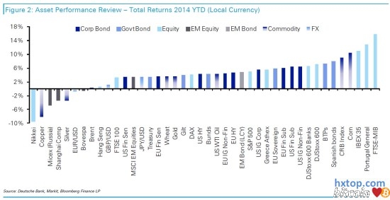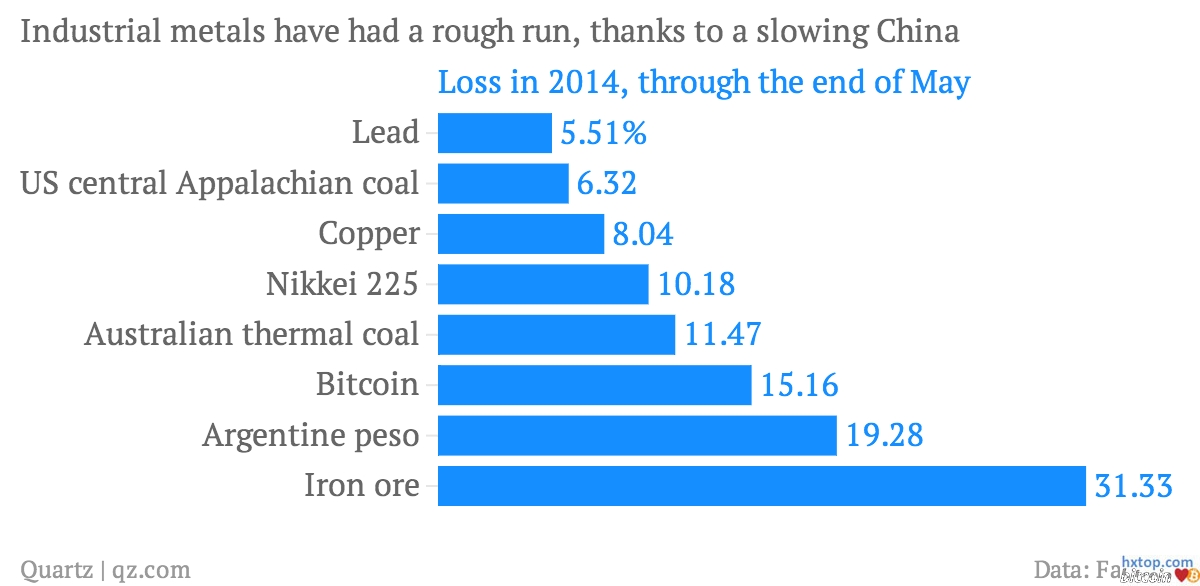 比特币这两周回涨了47%,理当让出今年全球最差投资的头把交椅。从FactSet数据排名来看,跌幅是今年第三高。最高的是受中国经济持续放缓影响的铁矿石。 要是去年底开始投资铁矿石,到今年5月底已经亏了31.33%,亏损幅度远超排名第二和第三的亏损大户亏19.28%的阿根廷比索和亏15.16%的比特币。