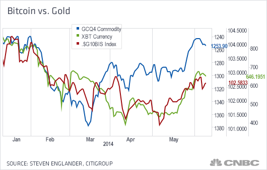 比特币价格在去年大涨了5倍,市场上将比特币和黄金的比较自此就没有停歇过。在比特币价格大涨5倍的同时,金价则下跌了差不多10%。 在今年5月,比特币价格上涨了约40%,金价则下跌超过2%。 虽然黄金和比特币在形态上截然不同,但其共同点确实难以忽略。它们都被认为是货币的替代品,它们都被当作是避免货币波动的安全储值方式。 然而,它们的价格走势又是如此的不同。 一些策略师认为,比特币正在越来越广泛应用于支付和储值,这使得其成为了非常受欢迎的黄金替代品。 策略师Ashraf Laidi在给客户的报告中称:“很多寻求黄金当作避险保值品的人现在转向比特币了。” Convergex的首席市场策略师Nick Colas说:“比特币受到年轻的追逐新技术的年轻人的支持,比起老派的东西比如央行或者实物黄金等,他们更信任科技。” 尽管比特币的爱好者们和黄金爱好者们某种程度上有着相同的考虑,但Colas认为,这两者的需求是来自不同意地方的。 “这两个资产的中心问题就在于他们的爱好者不同,黄金的爱好者们要不是来自印度和中国等新兴市场国家的人,一直就有着对黄金保值的信念。另外就是,购买黄金储存黄金是很容易的。”Colas说,“比特币则需要对技术的熟悉才能安全储存。” 但无论如何,两者都是避险保值的选择,比特币越来越受欢迎,很多原本黄金的资金被转到了比特币中。 Laidi说:“现在有超过17000个销售商使用比特币,这表明比特币最终会成为安全储值的方式。” 美元和比特币价格的走势相同,而金价则在相反的方向中。 “这表明投资者们在美元走强的时候在押注比特币,”花旗(Citi)的货币策略主管Steven Englander说,“我认为比特币是储值的方式,因此这样的相关性很出乎我意料。” 在年初金价上升的时候,全球最大的比特币交易平台MtGox宣布丢失了85枚比特币,并且最终关站申请破产,比特币价格遭遇下跌。不过在那之后价格开始稳定回升到600美元上方,而金价则失去了动能。很多将两者比较的投资者都在关注比特币和黄金之间的逆相关关系。