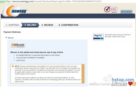 Newegg新蛋网支持比特币支付了,并且是首选支付手段,已经亲测证实。Newegg在美国的商品种类高达55,000种,已经是全美规模最大的IT数码类网上零售商之一。平均每天有超过5.5万个订单,100%的核准订单会在24小时内寄出,超过1,600万注册用户和约150万的日均访问流量。 转自微博:暴走恭亲王 |