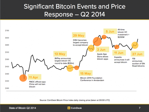 图2:2014年第二季度比特币大事件及相应的价格波动