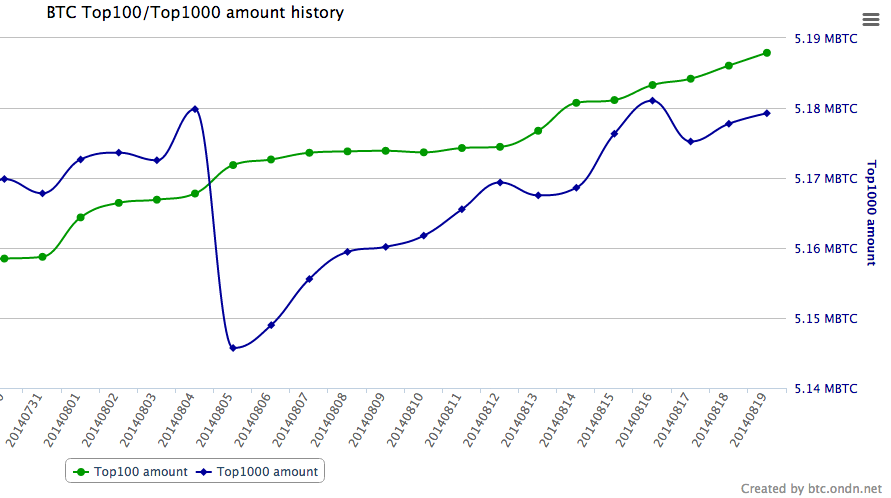 虽然这几天比特币价格波动巨大,但从比特币排名前一百的富豪榜的持仓量上看加仓趋势依然明显。从7月20日到8月19日,比特币价格下跌18%,富豪榜top100整体加仓幅度为2%。 ![]() 因此可以断定,最近下跌的主要动力来自于持仓量较小的散户。 原文转自:http://p2pbucks.com/?p=12094 |