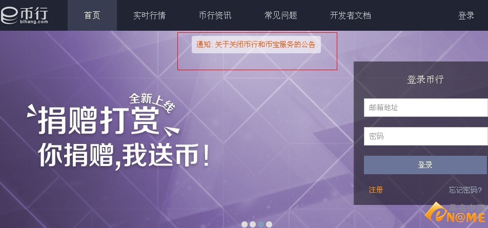 易名中国(eName.cn)9月9日讯,去年12月份,才启用域名bihang.com上线的比特币托管交易平台“币行”,运行不到1年,由于母公司友聚惠(北京)科技业务调整,其发布公告称将于10月1日停 止运营币行网站和币宝移动端应用,并提醒用户在此期间完成该网站内比特币和人民币资产的处置和转换,而双拼域名的去向成为投资者关注的话题。