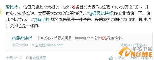 对于此次网站停运,有网友表示“非常关心,币行关闭后,bihang.com这个域名花落谁家?”,有网友则回应称,“域名本身就是一种资产。好的域名越留越值钱,即使项目关闭也一样”、“域名大概在10-50万之间”等等。