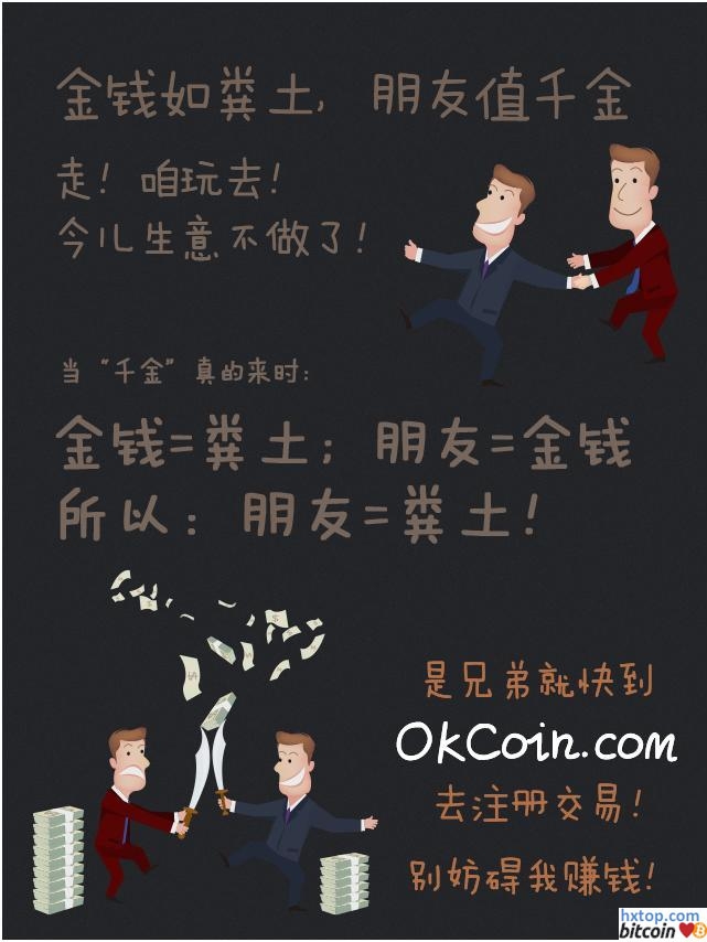 | OKCoin十一特辑:朋友除了用来被出卖,还能做什么 朋友到底是干嘛使的? 1 消磨时间的玩物 无聊的时候朋友就是打发时间消遣寂寞的工具,所以光棍男孩好基友,单身女孩好闺蜜,等到有了另一半,基友闺蜜统统闪开靠边站。 2 情绪垃圾桶 情绪不好没地撒气宣泄,朋友是最好的出气筒,柿子就找软的捏,人就找最亲近的欺负,兄弟互捅,闺蜜撕逼,不过,爽完要记得给些安慰哦,打一巴掌揉三揉,好基友才能一辈子。 3免费劳动力 你对一个人重不重要,就看他需要帮助的时候是不是第一个想起你! 搬家、接机、骂架,生病需要人照顾,好朋友就是免费的劳动力。 4 槽点供应商 最好的朋友,平时互相调侃,偏偏就是嘴最狠的那个,朋友间互黑就是娱乐,互黑增加友谊,真心的对你好的朋友,才会不虚伪的说奉承话,遇到这样的损友,就好好珍惜吧。 平日里,视金钱如粪土,朋友值千金,当“千金”就在眼前,金钱=粪土,朋友=千金,所以“朋友=粪土”! 只要价钱合适,哥们就是用来出卖的! OKCoin教你怎么挣兄弟的钱,人财两不误!