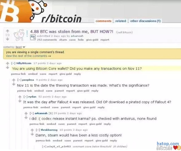 比特币是一种电子货币,存在于虚拟的互联网中,偶尔也会以实体货币的形式出现。一旦保管不当,被黑客获取了比特币钱包密钥,你的比特币就拜拜了。据了解,这位玩家正是下载了盗版的《辐射4》,黑客利用暗藏木马盗取电脑游戏中的比特币,真是防不胜防。 从理论上来说,盗窃比特币是可能的,但盗贼很难藏匿比特币,因为全世界的比特币交易都是公开的,全部保存在一个名为Blockchain的文件中,这些文件会定期上传到比特币的P2P网络中。这种公开的帐目体系,使得盗贼很难对比特币进行洗钱。 经过这件事,希望能给大家提个醒吧,买一盘正版《辐射4》的价格已经算是相当划算了,别像这个玩家一样,到头来白白损失了一笔。 |