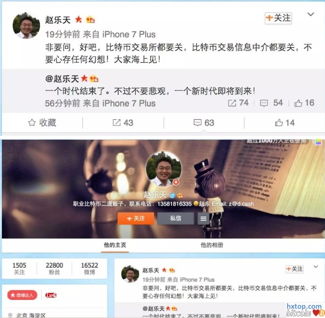 据用户向我们爆料,上海地区交易所今天参加了会议,会议内容要求关闭交易所。爆料人比较可靠,但是消息准确性可能较低。 消息未核实前,我们本不应该通知大家,但,接到用户爆料后没多久,赵东更新了相关微博: 截至目前,我们暂时不能核实相关信息。希望大家近期注意风险,我们也将继续跟进相关消息进度。
