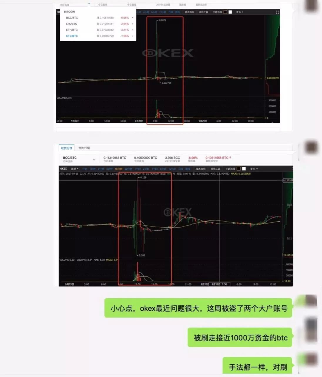 (图三:k线图) 负责该案的山东天矩律师事务所互联网金融业务部主任刘超群律师告诉金小鲸(id:lanjinghj),除了在OKEx上,OKCoin也存在被盗事件。根据2013年人民银行等五部委发布关于防范比特币风险的通知,比特币属于可以自由买卖的虚拟商品。目前关于平台最大的疑问就是:短时间内,大量用户被用相似的手段盗号。 9月1日,微博“timetimetime7”的用户就表示自己OKCoin账户468个莱特币只剩下125个少了343个。该用户称OKCoin合约账户转账到现货账户不需要任何密码或者验证,开发出的币对币交易完全没有深度,容易被盗号人员利用,OKCoin并没有提供相应的保护。 另有用户在9月16日OKEx存有的30个BCC代币被转移到OKCoin,9月23日该账户再遭入侵,在比特币、莱特币、以太坊和人民币之间多次买入卖出耗尽30个BCC和27个比特币,两小时交易近千条,异常IP有俄罗斯和荷兰地址。 “虚拟币财产换成法币提现的话,要求账户有实名认证,所以需要通过对敲或者爆仓的方式把利润一笔笔提走。”刘超群认为OKEx平台的几个问题包括:平时币币交易基本没有交易量,交易量突然百倍激增,平台对此没有做任何风控;异地登陆没有邮箱或短信验证;异地登陆提醒后,即刻联系平台,平台没有第一时间做出反应;获利账户的提币速度明显异常,远高于正常速度。 |