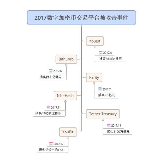 Bad Rabbit同样会感染系统MBR代码,中招用户电脑会在第二次重启时弹出勒索界面,要求受害者在40小时内支付0.05比特币(当时约合300美元)。 回顾2017年数字加密货币勒索病毒大事件,俄罗斯无疑是勒索病毒最爱“光顾”的国家之一。有安全专家称,俄罗斯之所以在勒索病毒面前格外脆弱,与其电脑基础设施薄弱、网络安全管理松懈,国内存在大量盗版软件等因素密切相关。 4) 现实中的数字加密货币勒索 数字加密货币热潮下带来的犯罪不仅仅存在于互联网上,也发生在真实生活中。根据乌克兰媒体的报导,40岁的俄罗斯公民Lerner,在乌克兰拥有多家与加密挖矿和区块链有关的初创企业,是当时全球最大的数字加密货币交易平台之一。Lerner在乌克兰出差时,就曾在办公室附近被歹徒掳走,并被要求支付价值100万美元的比特币。 2. 盗窃除了勒索病毒造成的损失,盗窃行为也同样可对数字加密货币持有者造成大量损失,从数字加密货币诞生初期,数字加密货币被盗的新闻就层出不穷。 1) 交易平台被黑 世界上比特币被盗最严重的事件之一发生在2014年。据报道,当时世界最大规模的比特币交易所运营商Mt.Gox,承担着当时超过80%的比特币交易,2014年2月28日Mt.Gox宣布,因其交易平台的85万个比特币被盗一空,已向东京法院申请破产。进入2017年,数字加密货币交易平台被攻击的新闻更是屡见不鲜,个别交易平台一年内还发生了多起入侵事件,比如韩国YouBit数字加密货币交易平台今年就曾遭到两次攻击:2017年4月的第一次入侵造成YouBit近4000比特币的损失,按当时的价格,总损失价值约为360万美元;第二次入侵发生在2017年12月,该次事件导致YouBit交易平台破产倒闭。 2) 个人钱包被黑 2017年伴随着数字加密货币的价格飙涨,不法分子无孔不入,试图利用各种黑客技术盗取个人及交易平台钱包密码,转走加密货币。 网站钓鱼:钓鱼网址bitcoinqod.org,和官网域名bitcoin god仅有一个字母:“q”和“g”的区别。该钓鱼页面要求用户输入钱包密码进行“爱心捐助”,而一旦用户在该钓鱼界面输入钱包密码,钱包内的比特币就会被全部转走。