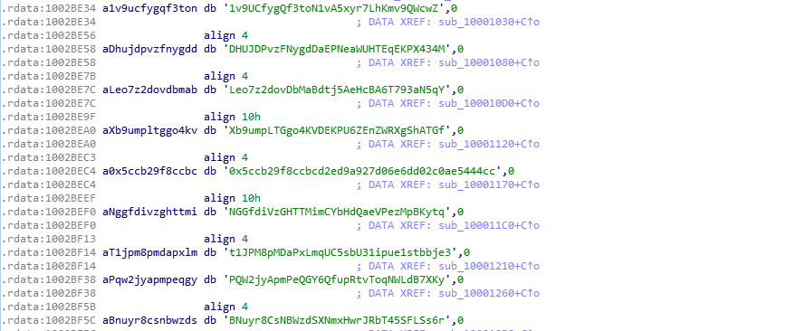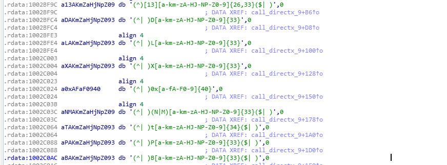 加密货币盗窃木马:2017年6月活跃的秘密洗牌者病毒(CryptoShuffler),可监视用户的剪切板,并对剪切板的数据进行实时匹配替换(匹配算法采用正则匹配),当中毒者进行转赠或交易时,剪切板中存放的乙方钱包地址将被替换为攻击者设置的钱包地址,该木马支持盗取比特币、达世币、狗狗币等9种数字加密货币: