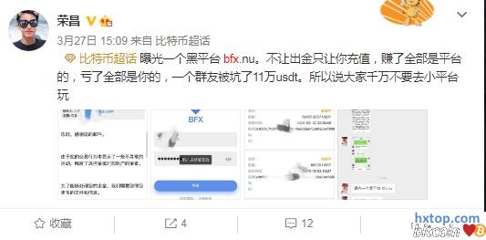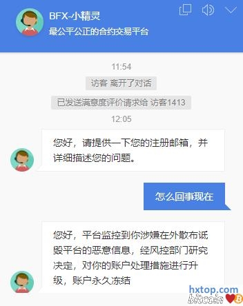 主打500倍杠杆的合约衍生品交易所BFX.NU,近期遭到一名名为L的用户投诉,首先是限制提币,在用户在社群发布相关言论后,甚至因为“涉嫌在外散布诋毁平台的恶意信息”,账户遭到永久冻结。平台方面表示,限制提币是因为用户涉嫌进行超高频短线交易扰乱市场正常报价机制。 22日在老牌交易所Bitfinex的官方群,突然维权者L闯了进来,“有没有bfx的高层领导,出来解释一下!”群友和管理员感到错愕,一番解释后,发现他原来进错了群。他要维权的对象,其实是一家名为BFX.NU的衍生品交易所。 据L对吴说区块链表示,它是BFX.NU的老用户,去年开始使用这一平台。8月2日因为行情波动比较大,L使用500倍杠杆爆仓了几次,陆续充值了1600USDT,中午12点左右的时候,比特币和以太坊有20%左右的波动,追空加上反弹做多,资金到了5000多USDT。 但是L发现提币一直不到账,问客服后推到风控部门用邮件联系,最后说让等1到3个星期。L因为是平台老用户,还是比较放心。但三个星期后客服回复说驳回提币申请,观察一个月,可以交易但是不可以提现。 23日L交易几单以后,突然发现账号登录不上,提示密码错误,改了密码还是登录不上,咨询客户后竟然得到这样的答复:平台监控到你涉嫌在外散布诋毁平台的恶意信息,经风控部门研究决定,对你的账户处理措施进行审计,账户永久冻结。同时L所在的多个微信群也遭到踢出。