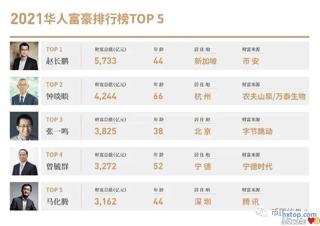 实际上这个榜单很有意思,如果加上马老师的话,实际上这几位巨富,分别代表了各自的赛道,和各个时代的红利。 杰克马大家都很熟悉,手握淘宝、天猫、支付宝、阿里云、蚂蚁链等国民级产品,是互联网电商方面当之无愧的巨头。 马化腾除了那句冲八万的表情包出圈之外,本身也是QQ、微信、QQ邮箱、腾讯视频、QQ音乐、阅文集团等国民级产品的老板,并且腾讯在对外投资上,更是形成了自己的帝国。 曾毓(yù)群则是这个新能源时代的王者——宁德时代的掌门人,大家都知道新能源造车有很多品牌,从特斯拉,到蔚来、小鹏、理想这国产三傻,再到华为和小米这些造车新势力,都得靠宁德时代给他们提供电池才能活下去,可以说曾毓群是新能源时代绝对的王者,也是淘金热下那个卖铲子的人。 抖音、今日头条、西瓜视频、火山视频、皮皮虾、懂车帝等很多你耳熟能详的产品背后都是字节跳动,而抖音的海外版也独立成长的很好,成为字节跳动的台柱之一,后来因为长期霸榜美国App市场下载第一名,引得川普说要对tiktok下禁令强迫字节跳动出售tiktok,不过随后川普下台,拜登又暂缓了这一禁令。 张一鸣对流量的理解,使得他排到了华人富豪榜的第三名,当之无愧。 而华人榜单的新首富,则是大家都很熟悉的CZ。