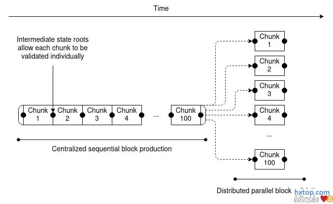 - 添加一个 Staking (质押) 层,有着较低的资源需求,从而实现分布式的区块验证。单个区块中的交易被划分为 100 个小区域 (buckets),每个 bucket 都有一个 Merkle 或 Verkle 树状态根。这个 Staking 层的每个质押者 (staker) 都会被随机分配到其中一个 bucket 中。只有当每个 bucket 中有至少 2/3 的验证者对该小组进行签名时,整个区块才会被接受。