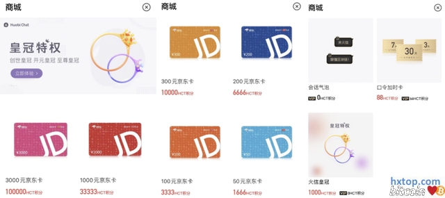 多家虚拟货币交易所清退中国大陆用户的安排进入倒计时,关联平台也受到影响。近日,有加密货币行业社交平台火信用户向蓝鲸财经表示,平台积分将被清空,除了能换成未知新积分,其他退出方式是参与抽奖或兑换京东卡。 火信APP显示,积分商城可兑换50元至数千元不等面值的京东卡。以33333HCT积分可兑换1000元价值京东卡计,单个HCT积分的价值在0.03元。据悉,不乏有用户在数年内投入数十万。亦有用户发现,近期每日兑换次数有限有时仅有一次,或被换空。截至12月7日晚间,3000元大面值京东卡当日已被换空。