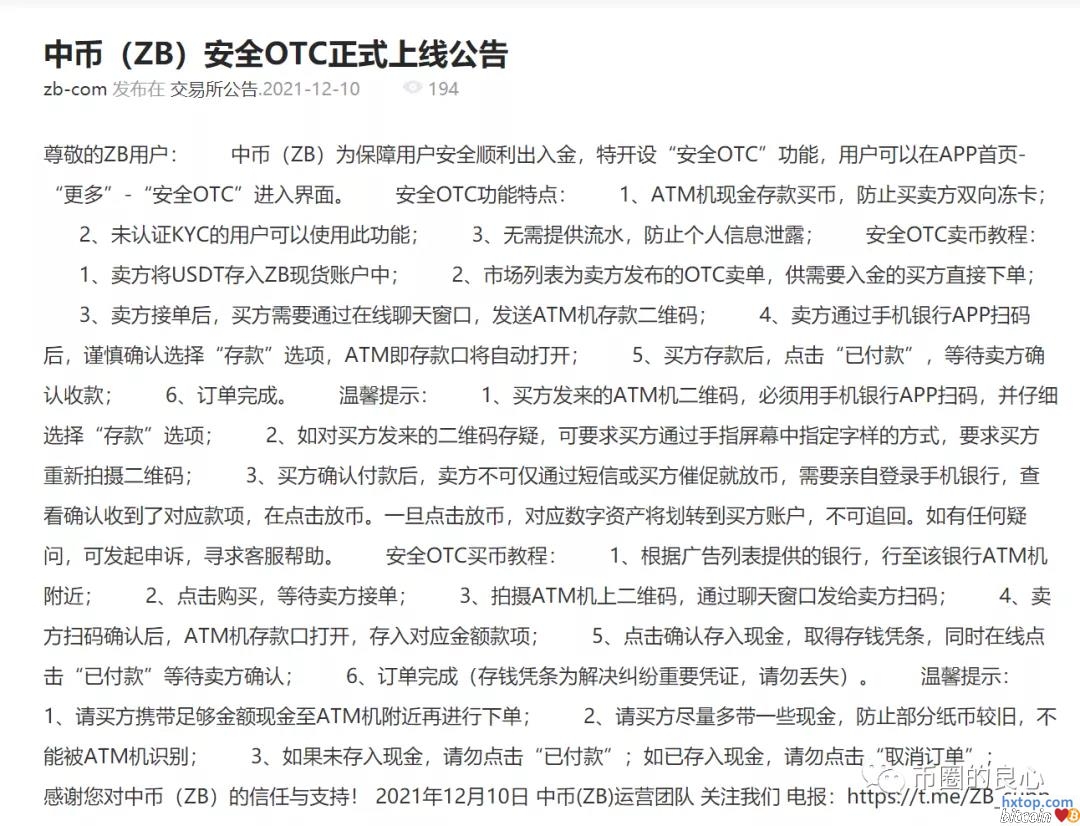 简单来说就是,通过ATM的存取款功能,完成数字货币的交易。 ZB团队还专门给这个业务起了个名字,叫安全OTC。 一来,ATM存款有金额限制,单次1万元。你要是想靠这个走流水,估计你得带着一袋子现金然后在那个狭小的空间里呆上一下午。 而且如果中间卡钞了,你这一笔交易很可能就傻逼了。卖U的人可不管你是不是卡钞,人家收不到就是收不到,你们之间产生的纠纷,就只能自己承担。二来,这种操作方法并不安全。ZB管这套玩法叫安全OTC,实际上是想强调,从ATM机里存进来的钱不可能是黑钱,所以卖U出金很安全。但目前已经出现了诈骗分子让受害人直接去ATM上操作,打钱给卖U的人,也就是说,在ATM机上操作的人,并不是要买你U的人,而是某起诈骗案件的受害人。 所以在警方调查的过程中,你是会被当做犯罪嫌疑人处理的。这种极端情况已经出现了,卖了个U,然后被当做电诈嫌疑人带走。 第三,为什么良心哥称之为最野出金法,是因为这个公告的行为是在公然对抗国家政策。央行公告里说的很清楚,开展虚拟货币业务属于非法金融活动。 总结一下就是,ZB本来想趁这一波拢一拢用户,但一来没有OK的背景,二来你又在玩花式作死,良心哥觉得风险极高。