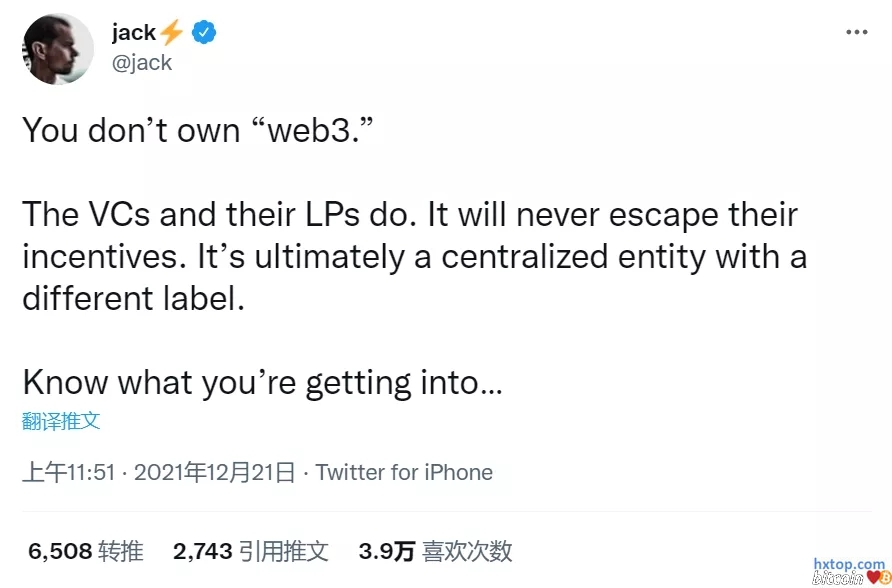 每一个加密世界的原住民,应该都对 Web3.0 这一概念并不陌生。Web3.0 概念通常指将所有数据和内容都留存在链上、并由用户所拥有的下一代互联网,支持者们认为这有助于我们建立一个更加去中心化、对用户更友好的环境,并可有效的反击中心化的互联网垄断巨头。 Web3.0 这一概念在近期讨论颇多,我们在此不做赘述。Web3.0 究竟是互联网的未来,抑或只是 VC 们为了赚钱而编造的一个谎言?围绕这一新颖且火热的概念,一场庞大且充满戏剧性的辩论正在推特上如火如荼的进行着。 从推特创始人杰克 · 多西 (Jack Dorsey) 到埃隆 · 马斯克 (Elon Musk),再到著名的风险投资机构 a16z、交易平台 Coinbase、加密 KOL、互联网专栏作家……这场论战裹挟着互联网各界人士竞相加入,在社交平台上争论的难解难分。 这场论战由推特创始人 Dorsey 发起,主要矛头指向了著名的风投机构 a16z。有趣的是,这家被誉为「美国最成功的 VC 之一」的风投机构曾投资了世界上最为知名的一系列明星公司,包括 Coinbase、Facebook、Roblox、Lyft、Airbnb、Skype 以及——Dorsey 曾带领的 Twitter。 a16z 全名为 Andreessen Horowitz,因为在首字母 a 和尾字母 z 之间有 16 个字母,便拥有了 a16z 这一更简短的名称。其名称来自于两位创始人,Marc Andreessen 和 Ben Horowitz。提起 Marc Andreessen 或许你并不知晓,但由他所创立的公司,曾几近引领一个时代——网景浏览器。 在网景与微软 IE 竞争失败被 AOL 收购之后,Marc Andreessen 长期活跃于投资界。作为第一代互联网浪潮和第一次互联网泡沫的亲历者,Andreessen 所带领的 a16z 数年来都曾敏锐的押注于未来,并取得了不斐的回报。根据公开资料显示,仅在 Coinbase 一个项目上,a16z 的投资净利润就已超过 70 亿美元。 当这一数次押注时代最前沿的 VC 再一次试图开创新时代之时,他们却遇到了 Dorsey——那个曾掌舵垄断科技巨头推特的加密支持者——力度空前的批评。 周二,Dorsey 发表推文批评 Web3.0 是风险投资公司的工具。随后,Musk 也加入了批评 Web3.0 的行列,他指责 Web3.0 概念的流行只是一种营销方式。而 a16z 创始人和其他 Web3.0 的支持者也纷纷做出了回应和反驳。 作为最知名的 bitcoin 支持者之一,Dorsey 并不是反对 Web3.0 时代的到来。这个执掌推特时曾主导创建了去中心化社交媒体协议 Bluesky 的他,并非反对去中心化的 Web3.0。本次争论的焦点并非在于 Web3.0 本身,而是立足于当下——VC 们所倡导的 Web3.0 是否只是 VC 们攫取超额利润的营销工具?当下的 Web3.0 真的能为用户带来 Web3.0 时代的产品、并达成它去中心化的崇高目标吗? 最终,这场争论以 a16z 创始人 Marc Andreessen 将 Dorsey「拉黑」这一戏剧性的方式单方面的结束了。Dorsey 同样也拉黑了 a16z 创始人、Coinbase CEO 等多位行业大拿。而其他人仍深陷在舆论场中继续进行着漫长而激烈的讨论。 「你并不拥有 Web3.0」吗? 这场围绕 Web3.0 的大论战源自 Dorsey 的一系列批评。Dorsey 所持的核心观点为 Web3.0 并不会使任何东西更加平民化。他认为 Web3.0 只是将权力从现有的掌控者——比如 Facebook 等科技巨头——转移到新兴的风险投资基金手中——比如 a16z。 他在周二发布的推文中这样描述 Web3.0 领域的去中心化,这也是这场论战开始的地方: 「你并不拥有 web3。 VC 和他们的 LP 会这样做。它(指 Web3.0)无法逃脱他们设置的激励机制,最终会是一个带有不同标签的中心化实体。 了解你在做什么……」