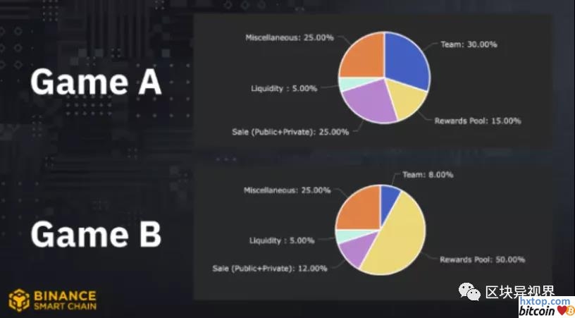 大多数现有的区块链游戏完全建立在区块链上,游戏中的每一次互动都是一次交易。这是普遍的基础设施模式,在过去几周链游的流量不断刷新历史最高点时,就很容易看出来。 不过,有些游戏只在游戏环境的特定部分使用区块链,游戏中的大部分互动发生在区块链之外。举个例子,想象一下带有NFT球员卡的FIFA22,还有一个可以交易这些卡片的市场。 最受欢迎的区块链游戏类型是GameFi,它是游戏和去中心化金融的结合,玩家除了在游戏中获得乐趣之外,还可以获得有价值的数字资产奖励(代币、NFT或其他数字资产等)——这种模式我们称之为P2E。GameFi项目的特点是,玩家的主要目的是赚钱。 GameFi领域的火热,也是因为L2以及一些高性能L1公链的出现,它们提供了支持区块链游戏的必要基础设施——交易速度快,成本低,从而使用户体验更好。 将区块链和游戏结合起来,其内核是合乎逻辑的;游戏玩家精通技术,熟悉数字货币,了解游戏内资产的价值,如角色、收藏品或皮肤。 目前有超过210个游戏在Binance智能链上运行,平均每天用户量达到89万(假设在过去的一个月内,不同游戏的玩家之间有10%的重叠)。仅在BSC上,前10名游戏的市值就达到了近10亿美元。 BSC当下正是验证GameFi新商业模式以及测试链游的最佳区块链之一。有相当多的游戏可以在这里脱颖而出,不断吸引用户并保持稳定的经济效益。 GameFi中的货币经济区块链上的游戏可以创建基于自己发行的代币的微观经济。这些代币会作为游戏中的货币,如魔兽的金币或Runescape的GP,作为游戏中的能量用于战斗或施法,或作为市场上的支付货币。这种可能性是无限的,并且会应运而生多样化的经济模式。 货币(代币)经济学,它观察和分析影响代币供需特征及其价值和效用的一系列因素,旨在设计一个可持续的、公平的、有吸引力的经济模型。 对于一些游戏,经济模型并不发挥重要作用或任何作用(如果他们没有代币),但对于GameFi来说,良好的经济模型对游戏的成功至关重要。 此外,GameFi通过增加具有循环和自我可持续经济的游戏模式,使代币经济学更复杂了一步。 多币/单币模型单币模型可以理解为使用一种代币来做所有事情——治理、游戏内流通代的货币等。单币模型的矛盾在于,玩家想要赚钱(代币),得先花钱购买代币。如果代币价格太高,玩家可能会犹豫不决;如果价格太低,玩家会失去玩的兴趣。 出于这些原因,更多的项目开始在游戏中建立双/多代币经济模型。在双代币模型的情况下,主要代币通常是治理代币和游戏中的次级代币。次级代币甚至可能不需要上链(即虚拟货币)。 如果只有一级代币在交易所交易并以法币计价,我们可以减少二级市场对游戏内代币和游戏本身的影响。如果实施得当,双代币模式可以让玩家在玩游戏时不受初级代币价格和波动的影响。 多代币模型也创造了一个机会,不同类型的游戏可以互相互动,如次级代币转换、通过代币混合来制作人物。 根据我们的观察,无论是多代币还是单代币模型,都可以建立一个可持续的代币经济。关键因素仍然是代币的分配和它的作用。 固定定价vs预言机定价系统 预言机是为区块链提供来自外部系统的数据的节点,允许智能合约根据现实世界链下的输入和输出数据来执行命令。 在GameFi中,某种意义上,可以通过游戏中的交易情况来锚定游戏内代币的法币价格。这意味着,游戏内交互的代币成本将根据代币的美元价格而波动。 预言机定价系统有助于保持币价偏低且稳定,因为它与法币价值挂钩,但由于奖励支付(游戏中的代币)也与法币价值挂钩,它在波动期间会影响游戏性。 如果使用固定的定价系统,就更容易预测玩家的收益情况,但如果价格飙升,就会使新玩家失去兴趣。 值得注意的是,GameFi中几个备受瞩目的倒闭事件都是依靠预言机定价。然而,GameFi的格局正在成熟,哪种定价系统更适合,还有待观察。 代币经济模型中的关键考虑因素 代币分配 代币分配机制是可持续且公平的代币经济学模型的核心。代币分配是游戏如 何在不同的利益相关者之间进行代币分配——开发团队的工资、公募及私募 投资者、运营费用和玩家收益。