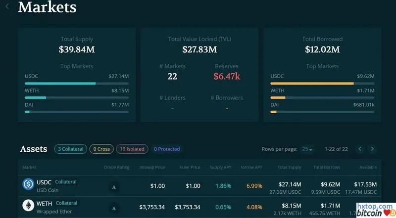 118/204 但这种优点在DeFi中是缺乏的,这也意味着在投资和构建的早期阶段,代币还没有在中心化交易所上线时,它就已经缺失了。 119/204 假设你找到了一个你想要的新代币。 你有100美元的质押品。 在CEX上,你可以做多2000美元的代币,但在DeFi中,你只能用这100美元来挖矿。 120/204 有了Gearbox协议,你有机会打开信用帐户,让你借杠杆头寸和在各种各样的DeFi应用程序使用他们,让你可以长期处于去中心化环境。 121/204 这是一个游戏规则的改变者,不仅是对Gearbox来说,而且我实际上认为Gearbox将在这个周期内推动经典的DeFi 1.0绩优股的增长。 就像perps/futures对CEX成交量的作用一样,它也会对DeFi成交量起作用。 122/204 虽然代币还不能交易,但我认为它将在2022年表现强劲。 123/204 Euler.finance Euler很可能是自Aave以来对借贷模型的第一次重大改造。 这是对借贷协议的全新想象。 124/204 一个聪明的合约/账户模型,以及从包括AMM矿池在内的一组不同的预言机中创建独立对的能力,为不同的资产增长创造了巨大的机会。 125/204 大多数贷款协议都有一个问题,那就是它们的强大程度取决于它们最弱的资产。 这就是为什么我们看到Cream面临这么多破坏性的行为。 126/204 Euler谨慎地平衡了四种类型的市场: 抵押的、交叉的、孤立的和受保护的。