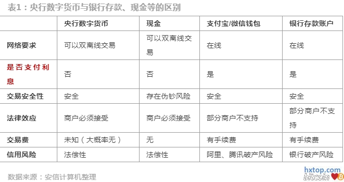 2、注册界面 从内测版央行数字钱包的注册流程来看,有两点需要重视: 1)按照实名角度来看,央行数字货币钱包分为四类,一类(强实名)、二类(较强实名)、三类(较弱实名)、四类(弱实名)。 只用手机号注册,获得的是四类钱包,功能有限;完善身份证号码、姓名,则可升级为三类钱包;绑定银行卡号可进一步升级为二类钱包。钱包的实名程度越高,功能越多,可交易的额度也越大。 2)从注册需要填写的网点号来看,此次央行数字货币的试点预计将在深圳、雄安、成都、苏州四地开展。符合此前《财经》报道的央行数字货币预计在深圳、苏州等试点的爆料。 央行数字货币兑换流程: 1)线上:在绑定了银行卡后,我们可以在APP上直接通过银行卡网银转账兑换成央行数字货币; 2)线下:尽管在APP上没有显示,但是我们判断可以在线下网点或者ATM上进行兑换。 广电运通此前在投资者互动问答平台上披露了公司和几个国有大行正在一起联合研究开发数字货币在金融自助设备上进行自由兑换的解决方案,也侧面验证了上述判断。 央行数字货币支付流程:总体来看,央行数字货币支付流程与目前主流的移动支付的流程一致,都可以通过NFC、扫码支付等形式来支付。 央行数字货币对于银行的影响。包括穆长春在内的多位央行官员前期都公开表态:央行数字货币属于现金(M0)范畴,也就是说对于央行数字货币账户不进行付息。从目前内测的钱包账户来看,我们也未看到有计息的相关体验。 从上述角度来看,除了日常交易之外,理性消费者仍然会将主要的资金存放于银行存款账户等付息账户内。因此,我们认为央行数字货币的推出并不会对银行造成存款挤压; 反而,推广央行数字货币可以将目前流通在银行体系之外的纸钞转换到银行体系内。