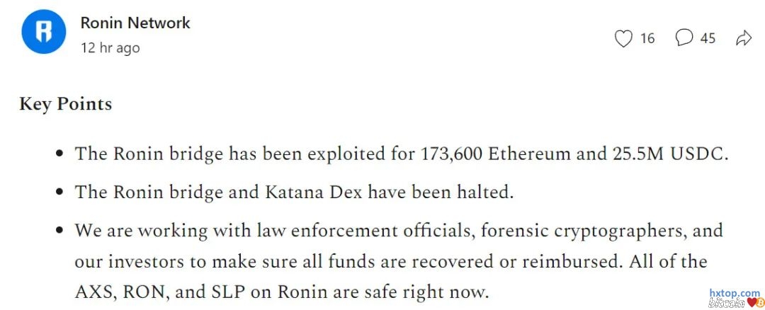 参考链接: Ronin Network 官方分析: https://roninblockchain.substack.com/p/community-alert-ronin-validators |