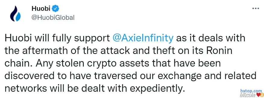 值得注意的是,黑客发起攻击资金来源是从 Binance 提币的 1.0569 ETH。 目前,Huobi、Binance 创始人均发表了将全力支持 Axie Infinity 的声明 ,FTX 的 CEO SBF 也在一封电子邮件中表示,将协助取证。