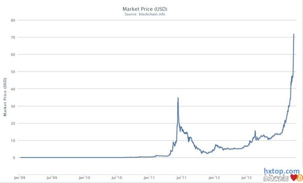 从16美元涨到72美元只用了不到两个月时间,也就是说在18个月内从2美元涨到了78美元。 比特币价格的不断上涨将给美联储和欧洲央行带来压力,这个P2P的电子货币可能会冲击央行的作用。 |