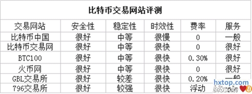 在费率方面,比特币中国、比特币交易网、火币网都实现了零手续费,其中火币网不但交易免手续费,在充值提现方面也实现了零手续费,这点相比其他交易所有着不小的优势(其他的平台充值、提现收费0.2%-0.3%)。而BTC100以及GBL交易所的交易费为0.3%和0.2%;796交易所则采用浮动式的手续费方式。