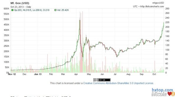 受近期华盛顿谈判僵局以及百度接受比特币支付等因素的影响,比特币在丝绸之路网站关闭后并没有走上穷途末路。本周三,比特币升至近235美元。周四,一度跌至175美元,后反弹至210美元。可见,比特币并未受到丝绸之路网站关闭的影响,一直在高位徘徊。