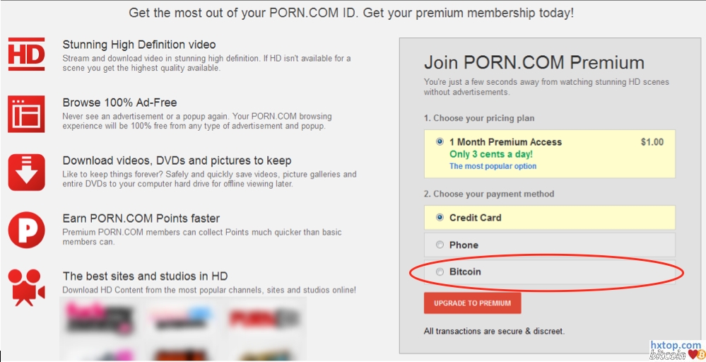 领先的知名成人网站Porn.com已经开始接受比特币付款。