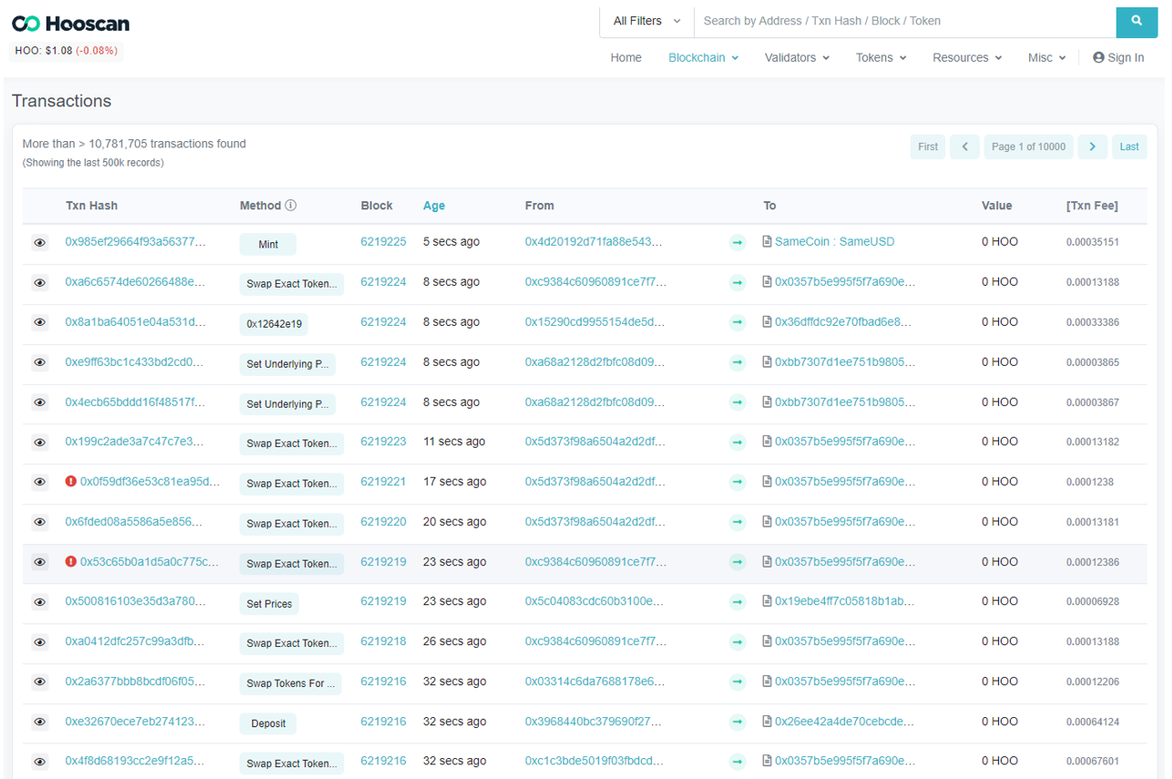 下图来自HSC区块浏览器,从图中的交易时间可以看出HSC的活跃度: