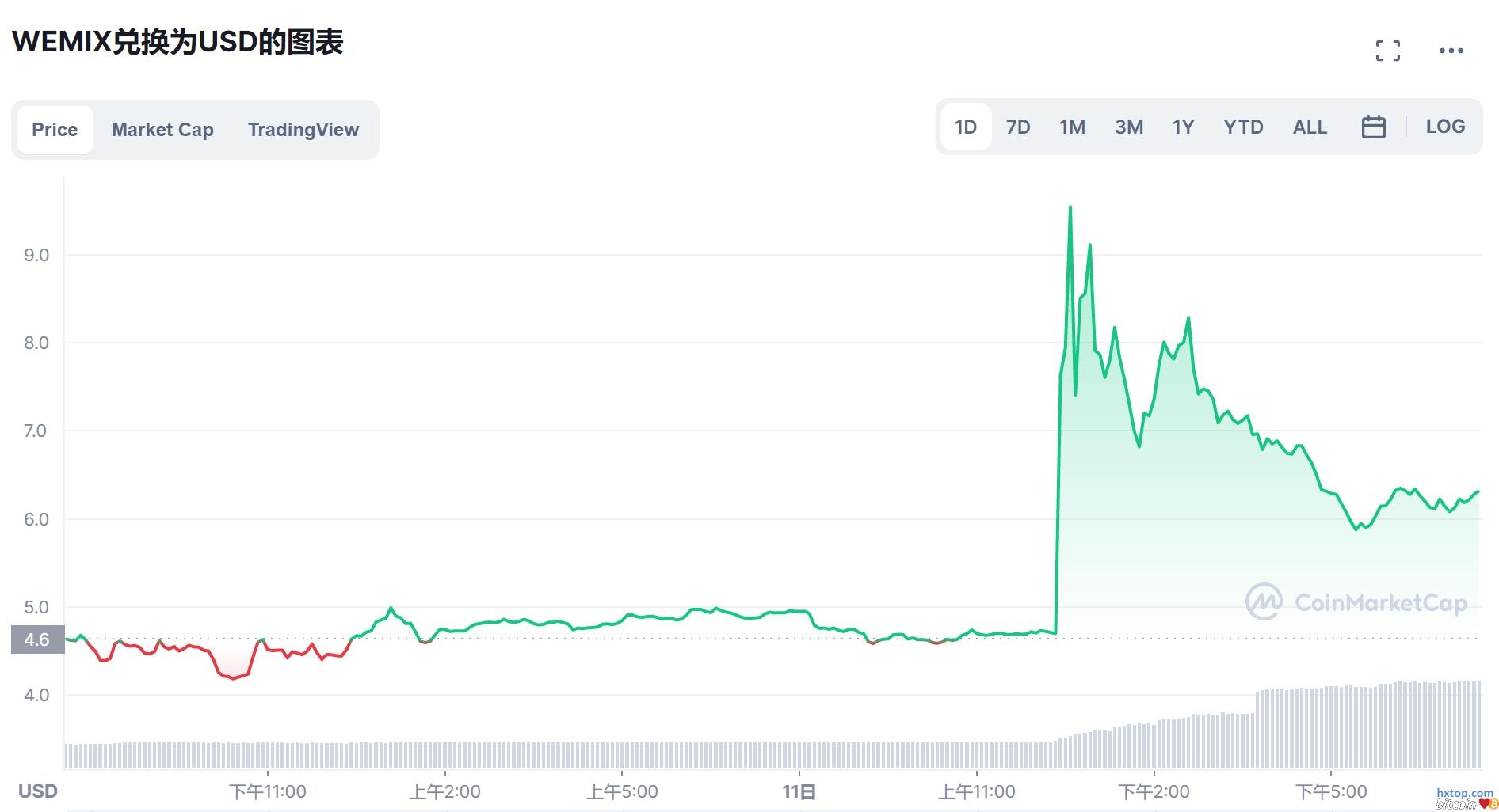 下图今日Upbit 宣布上线 WEMIX之后,该代币的价格变化: