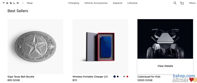 | 特斯拉(TSLA.O)美国在线商店部分商品接受狗狗币作为付款选项。据了解,只有符合狗狗币资格的产品才能用狗狗币支付,所有的狗狗币购买都是最终销售,用狗狗币购买的物品不能退货、换货或取消。