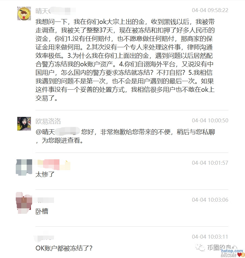 今天下午,一段关于OK出金被冻结银行卡和账户的聊天记录刷遍了币圈,不少粉丝、同学都在问良心哥对这个事情的看法,那就简单聊聊吧。